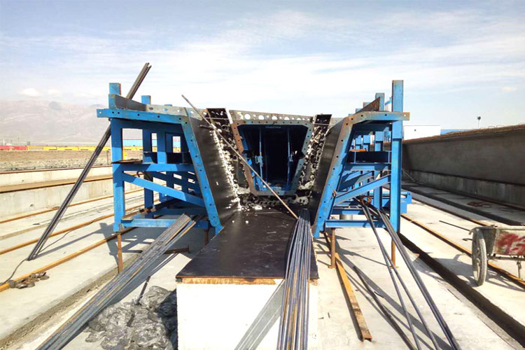 3、安裝底模時應(yīng)在底模上準(zhǔn)確標(biāo)出梁體的中軸線,并調(diào)整底模的反拱度。? ??